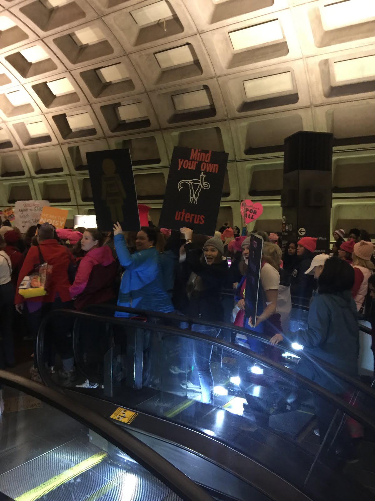 After 11 stops we reached L'Enfant Plaza and HOLY SHIT was it crowded. Quite a few people got off at the stop before ours but our stop was still so jam packed that it took upwards of an hour to get out of the terminal! We had lots of people to chat with though and there were many spontaneous bursts of cheering and "Hey Ho! Hey Ho! Donald Trump has got to Go!" It was so overwhelming and loud but completely invigorating and exciting at the same time! We loved reading all the signs people had made.